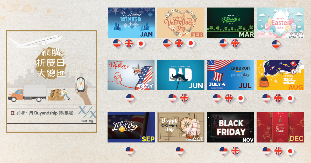 有沒有人告訴你網購必知哪些折扣優惠日?!愛網購的朋友都知道一年四季都有不同的節慶減價活動,尤其美國,很多網店和品牌都配合節慶日推出折扣優惠活動。小編為求大家可以買得更抵攞到更多優惠,幫各位精心整理了一年四季海外網購必收的折扣優惠行事曆📅!除了美國重要節日優惠及百貨公司優惠日之外,小編還會提供全年其他國家網購的主要購物優惠日,跟著以下「網購折慶日大總匯」 mark 低所有海外網購優惠節日,讓你月月慳住買笑住賺😂