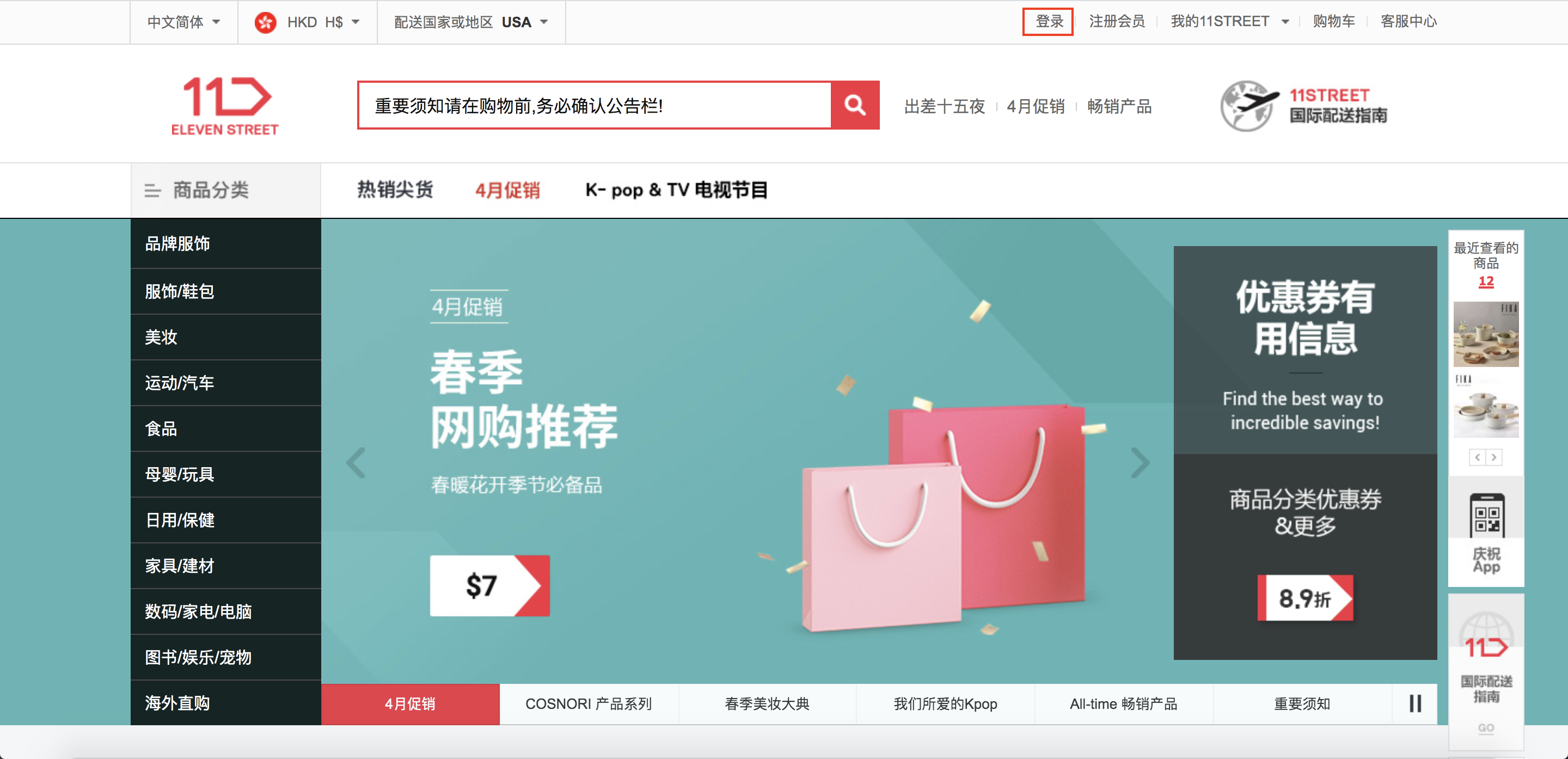 11st 設有中英版,絕對係方便海外賣家的貼心功能!只需要於網站右上角選擇你想要使用的語言,就可以輕鬆轉換。