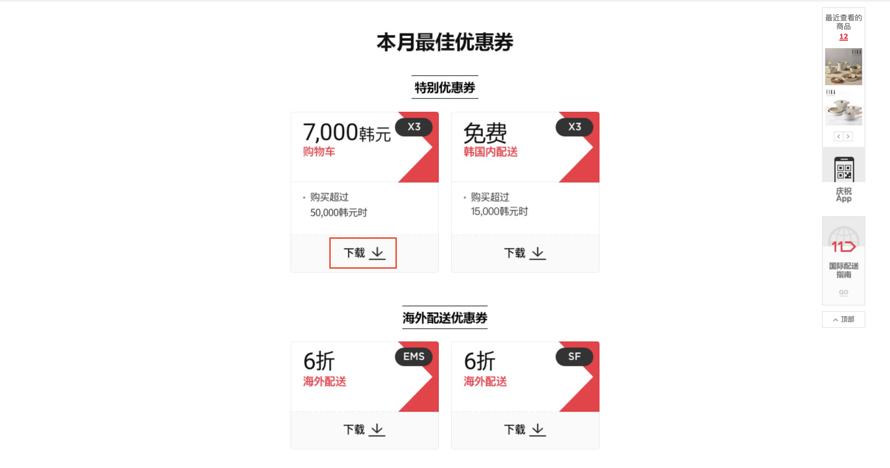 註冊成為會員後就可以於「優惠券&活動」頁面領取優惠券,只需點按「下載」就成功領取~