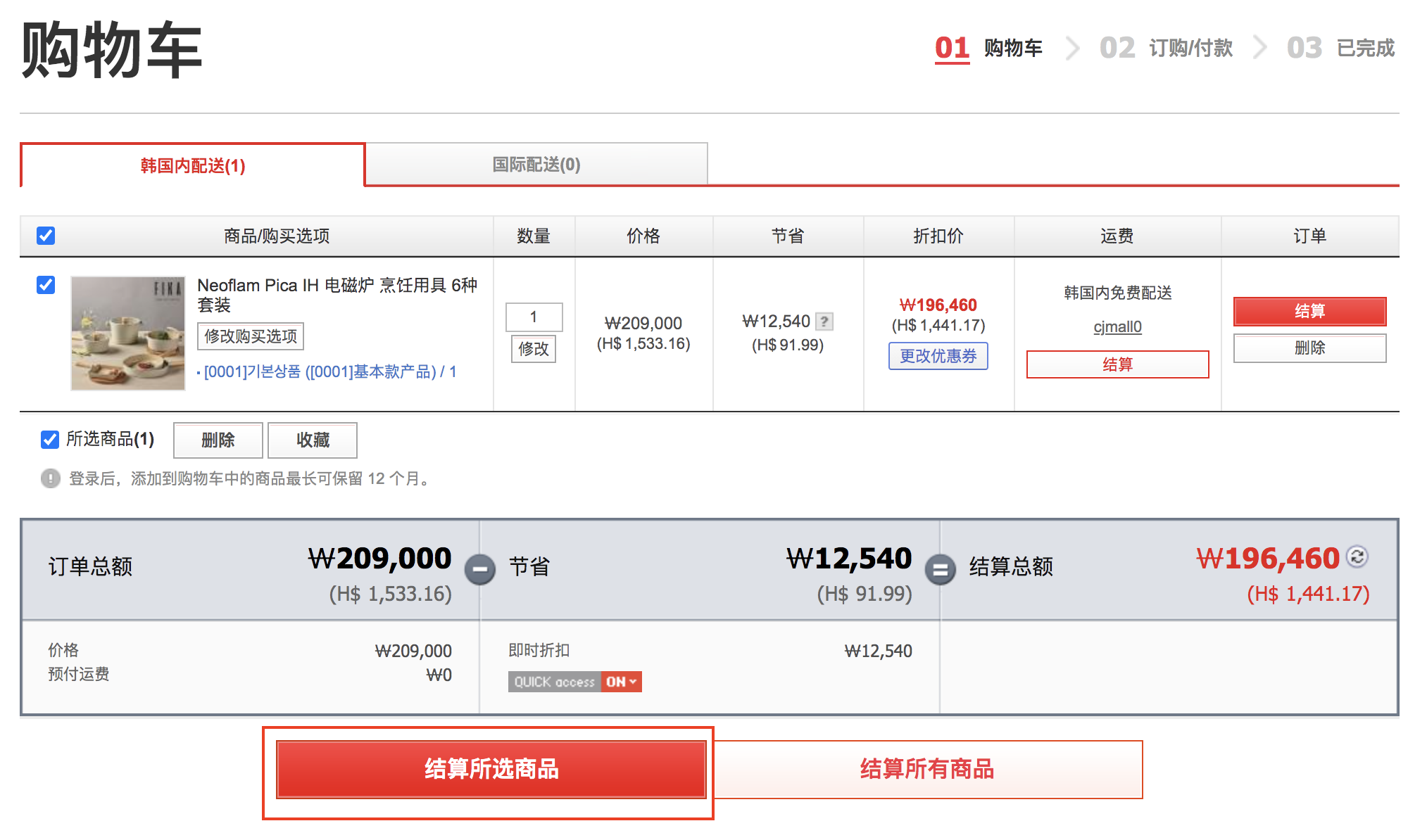 將所選的產品加入購物車後就可以進行結算,記得再次檢查優惠券是否已經套用到產品的價格。