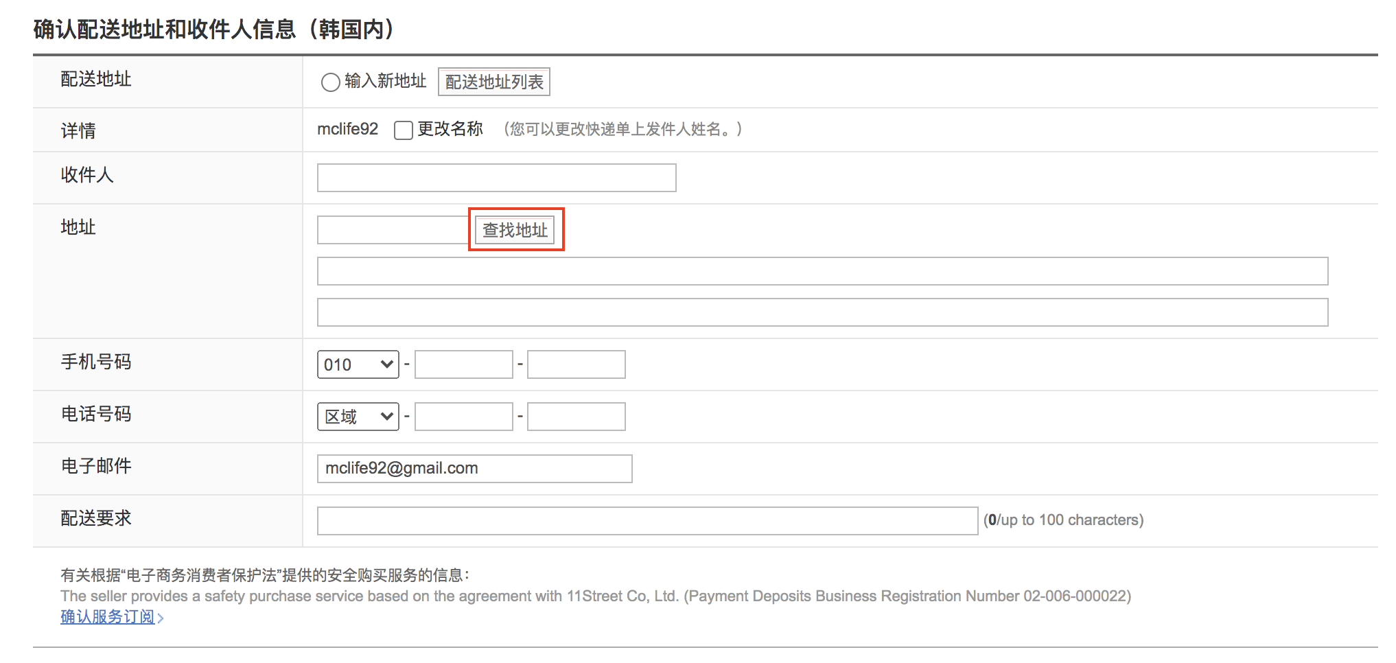 填寫地址時需先點按「查找地址」,然後只需要根據「海外倉庫地址」一頁填上即可。