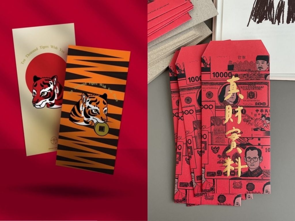 以「猛虎咬金、雙虎迎春、十虎臨門、金絲財虎、福虎雙修」主題設計並運用不同印刷及加工方式,讓你每一刻都感到用心與驚喜,也在過年期間以獨樹一格的紅包袋贏得眾人目光與尊敬,讓你在接下來的虎年如虎添翼、祝你幸虎。