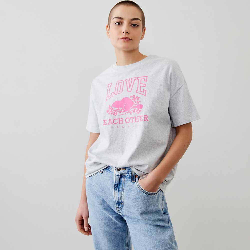 經典 Roots 海狸 LOGO 短袖T恤加上 LOVE YOUR FRIENDS 文字,呼應這個充滿愛的季節。