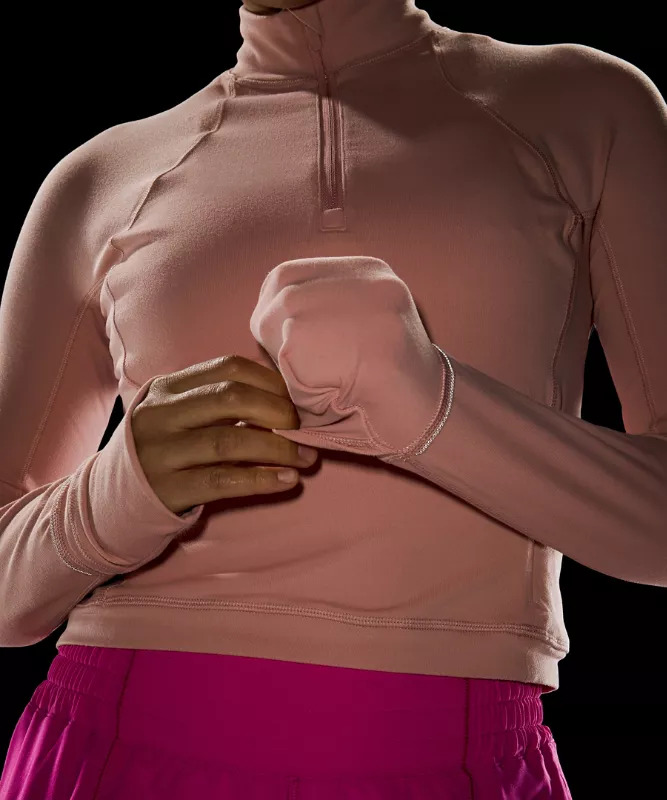 短身設計能完美搭配高腰瑜珈褲,衣服側邊有拉鍊口袋,可存放卡片或鑰匙。衣服採用 Rulu™ 面料,質地柔軟且有保暖功用。