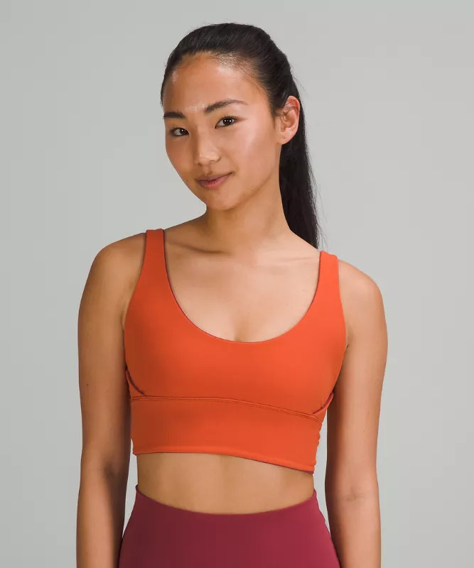 這款運動文胸由 Nulu™ 面料製成,手感柔軟、輕盈透氣、吸汗且快乾,內外分別有橙色及棗紅色,可以內外翻轉穿著,一件多變。