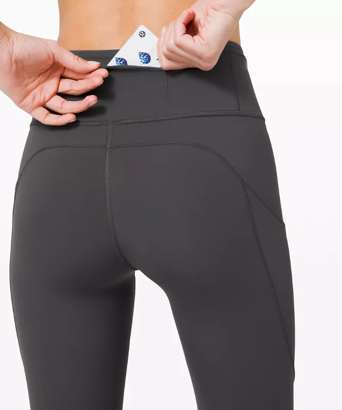 瑜伽褲的兩側和後背設有口袋,方便存放電話及卡片,腰間有拉繩有助於調節瑜珈褲鬆緊。採用 Nulux™ 面料製成,輕盈得彷如沒有穿著一般,速乾、吸汗。