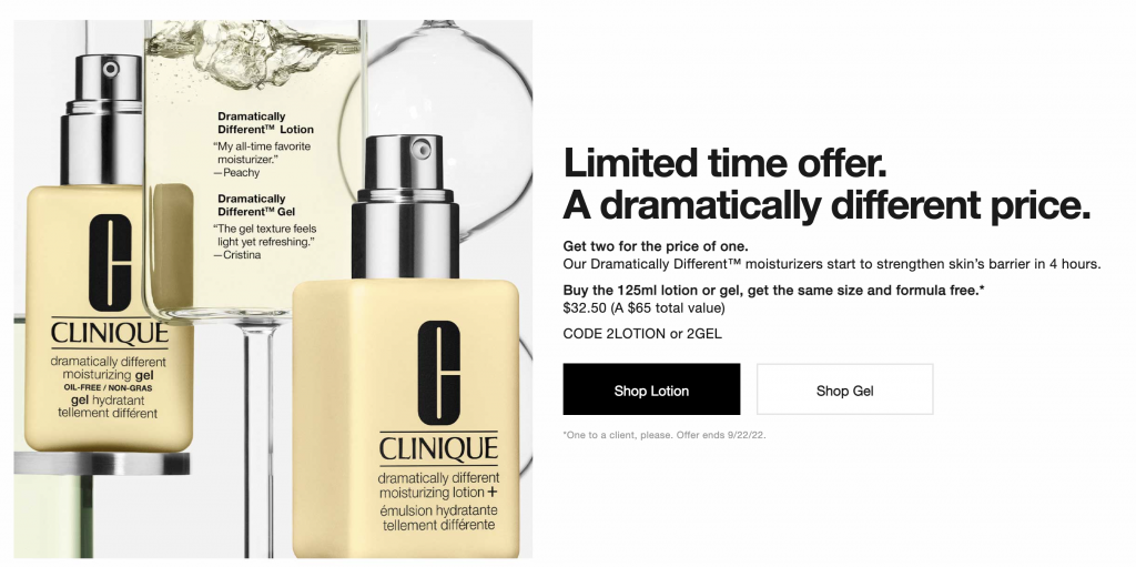 美國醫美護膚品牌 Clinique 全港銷量 No.1 的乳霜「黃油」,有效強化肌膚天然保護膜,達致水油平衡,想擁有健康水潤膚質一定要試試!現在美國官網正進行限時買一送一特價優惠,折後平均每瓶 125ml「黃油」只需 HKD128,比澳門原價 HKD305 一瓶便宜了很多,不論自用或送禮都相當划算!