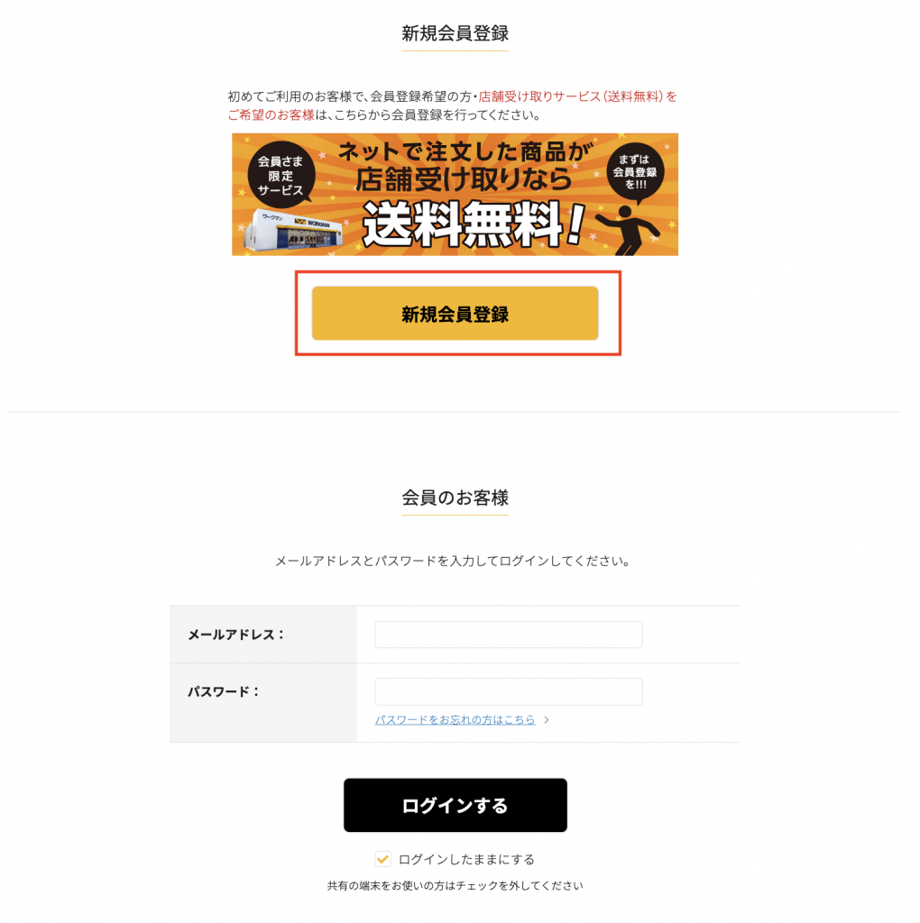 網站將跳轉至登入頁面,如果是第一次購買的新客戶,按指定按鈕進入。