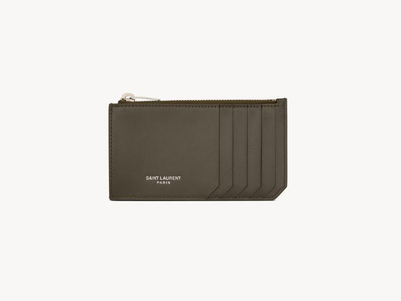 SAINT LAURENT PARIS 滑面皮革多層式拉鏈卡片套