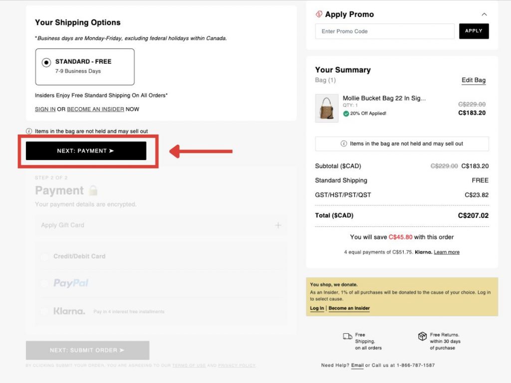 點擊「Next: Payment」以繼續填寫資料,如有優惠碼可於右上角輸入。
