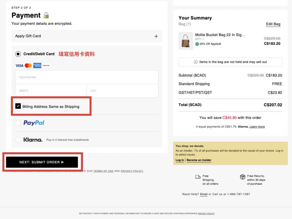 確認訂單及收件資料無誤後,點擊「Next: Submit Order」完成訂單。