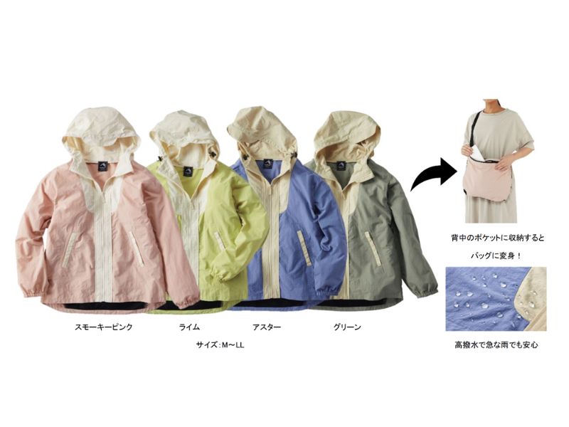 一件多用!這款外套可收納於背後口袋中,瞬間變身成 A4 肩背包,旅行或外出都超方便。具備高效撥水加工,雨天不怕濕,並附 UV 防護功能,抵禦紫外線,兼具實用與時尚。