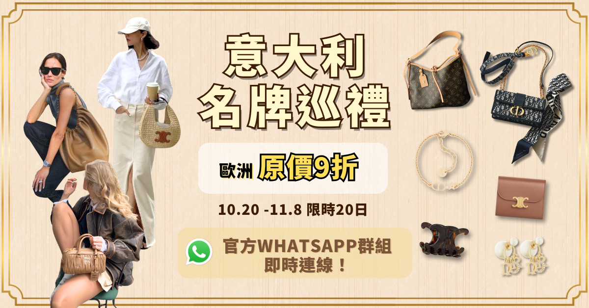 立即加入 「Buy&Ship 意大利快閃代購 WhatsApp 情報群組」,即時掌握意大利名牌連線最新報價,第一手優惠與產品資訊,有興趣千萬別錯過,隨時留意更新!