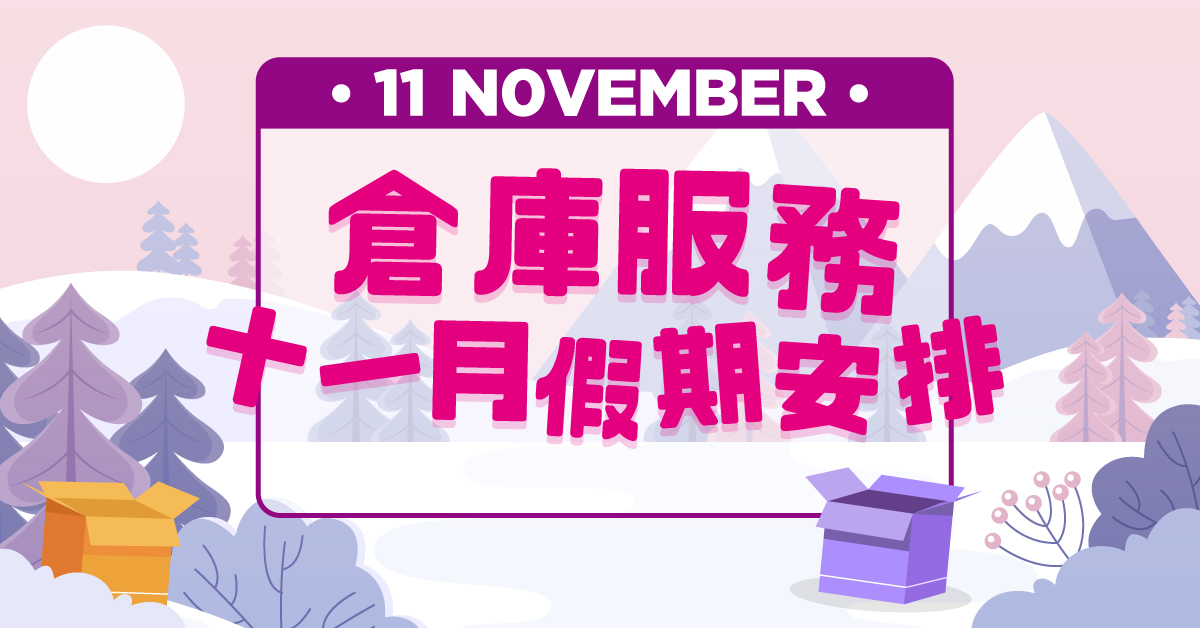 服務公告 倉庫服務:十一月假期安排 30/10/2025 各地倉庫在十一月將於當地公眾假期期間休息。倉庫休息期間將不會接收貨件、寄出貨件或更新貨件狀態。 十一月各地倉庫休息日期: 倉庫休息日期意大利11 月 1 日(六)日本11 月 3 日(一)、 11 月 23 日(日)、11 月 24 日(一)美國11 月 11 日(二)、11 月 27 日(四)加拿大11 月 11 日(二) 有關各地倉庫的出庫時間,請參閱「會員中心 > 海外倉庫地址」的資訊。 若服務安排有任何變動,我們會盡快於本公告內更新。