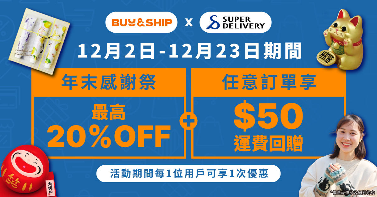 - 活動期為 2025 年 12 月 2 至 12 月 23 日,以貨件入庫時間為準,Buy&Ship最終會與Super Delivery所提供之訂單紀錄進行查核。
